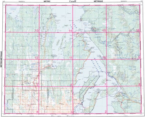 1:250,000 4" = 1 mile covers a 80 mile x 80 mile area, Contour Interval - 20m, Datum - NAD27, UTM Zone - 14, Edition - 04 |